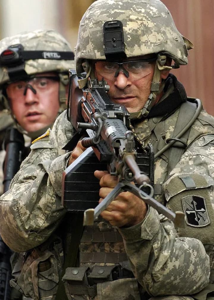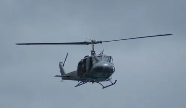 The drone of engines and sharp sound of blades scything through the air was heard as a Huey helicopter approached. On board was Kincaid with rifle in hand and ready to kill.