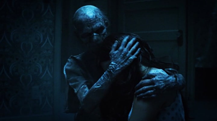 The evil entity in Insidious Chapter 3 has a terrific look, it's an elderly serial killer who wants Quinn's body to allow him to return to the living and let him get back to killing. The terror of aging combines with the terror of this horrible man's past to create a terrifying horror villain of strong motivation and horrific presentation. Whannell adds an element of Hitchcockian terror to the proceedings after the entity leads Quinn to being hit by a car, breaking both of her legs, and leaving her vulnerable and not unlike Jimmy Stewart's vigilant, endangered main character in Rear Window. It's a modest homage that perfectly suits the story of Insidious Chapter 3.