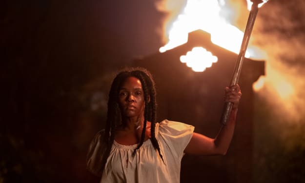 The hallucinations become more severe: she sees figures with their eyes and mouths sewn shut, pouring some dark liquid into her pupils while she lays on the ground, petrified, unable to fight them off. Many of the locals stare at the couple with vacant smiles. Have they become pawns of some sort of cult?