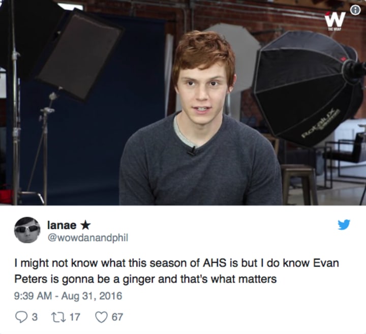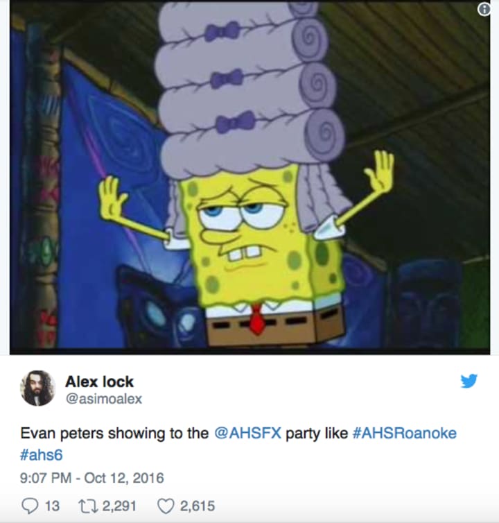Evan Peters blessing us with this scene. #AHSRoanoke pic.twitter.com/2tKX0nXB2g— AmericanHorrorStory (@RoanokeAHS) October 13, 2016
