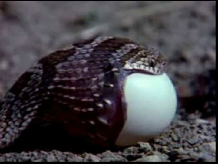 Usually by unhinging its jaw in a really weird way. Seriously, Reg, that’s messed up.