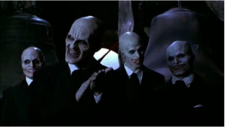 In "Hush", though, the Gentlemen strip the whole town of Sunnydale of the power of speech. In Sunnydale, no-one can hear you scream. It was actually Joss Whedon's attempt to subvert his own show. Buffy was getting high praise for its dialogue, so he decided to do an episode with as little dialogue as possible.