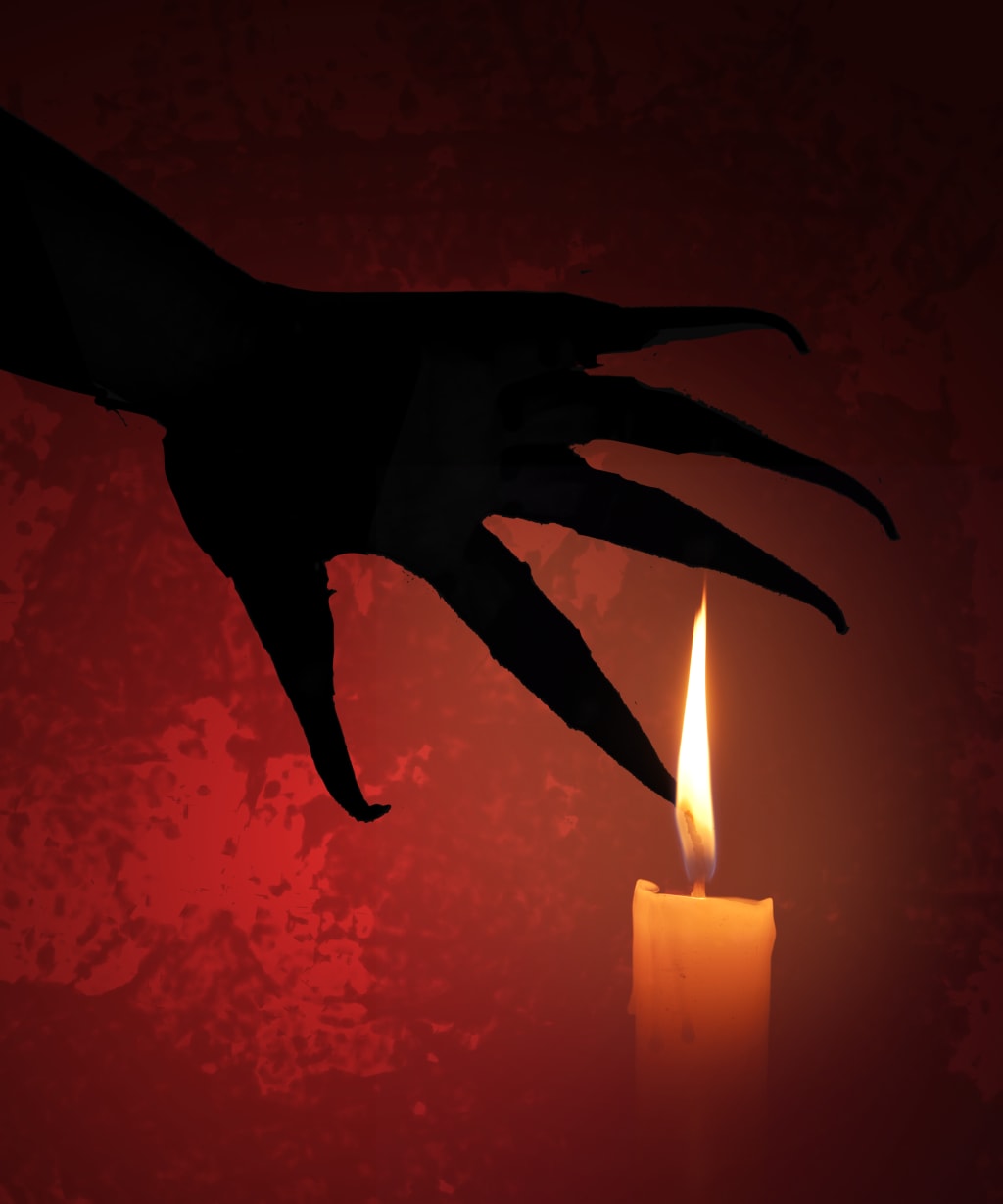 “Well, they would hear a little boy giggle, and footsteps on the wooden floors that they just finished putting in. They would see small white candles appear in random places, usually already lit. But the worst was what would happen if they didn’t put those candles out. If the candles stayed lit, a fire would start. Something in that house would always manage to knock over the candle, even if it was lit for no more than a few moments. It made rebuilding so hard. People around town started to talk, spreading rumors. They thought that it was the little boy who would light the candles – but it was the other spirit who would appear to knock them over – so that it can spread as much light as possible. Those rumors seemed to almost be made real with reports being made of a yellow eyed figure that would always appear before a fire would break out.”