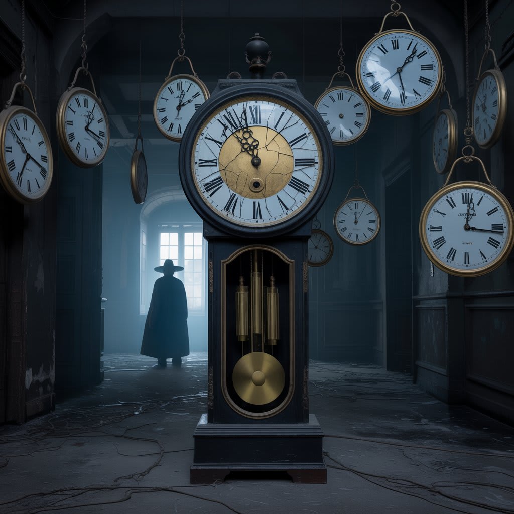 “You waited for him,” the figure said, its face flickering with static, like a broken TV signal. “You kept time alive for him. You let it tick, always hoping he’d return. But tonight... you gave up. You let the clocks die.”
