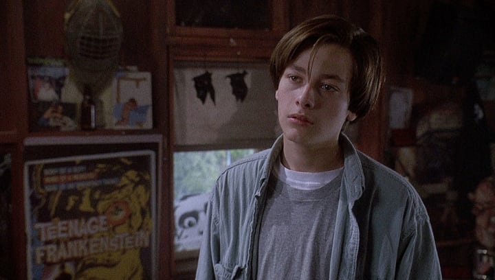 Brainscan stars Edward Furlong, fresh off his blockbuster role in Terminator 2: Judgment Day, as horror movie junkie, Michael. Michael's life revolves around horror movies. Alongside his best bud forever, Kyle (Jamie Marsh), Michael runs a horror movie club at school. The club has even attracted Michael's crush, his next door neighbor Kimberly (Amy Hargreaves), who we first meet as Michael is spying on her with a telescope as she undresses in front of her bedroom window, which is completely open. This is so the screenwriters can cheat and have dialogue indicating that Kimberly wants Michael to spy on her.