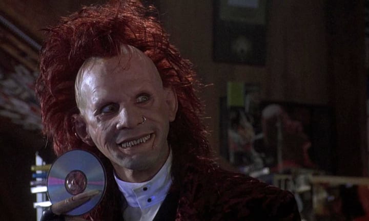 Brainscan stinks, there really is no other way to put it. It's quite clear that the people who made Brainscan thought that The Trickster was going to be their Freddy Krueger or Jason Voorhees. They really thought that a character that looks like what would happen if you electrocuted and burned Alice Cooper while on stage, was going to be the key to franchise money. This is indicated by the fact that The Trickster has a song on the soundtrack, written by and performed by Primus. It's poignant in its misguided and failing grasp for glory.