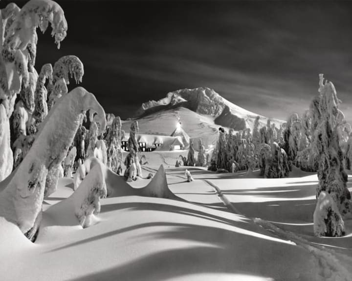 Captured by Ray Atkeson, this is the haunting photo of Timberline Lodge that Kubrick came across while scouting locations for the Overlook Hotel.