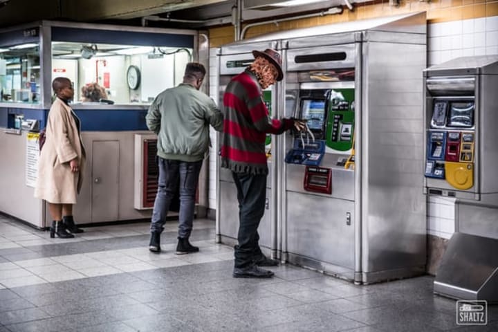 Apart from Jason taking a trip to the Big Apple, the big horror bad guys tend to be relegated to the grave, but not anymore. Photographer Jason Shaltz and his "Everyday Horrors" series gives us a candid look behind the lens at what life would be like if horror legends lived among us. Everyone wishes for Superman to fly into their birthday party, or to bump into Wolverine at the bank, but what about the forgotten stars of cinema — the horror greats? No one wants Norman Bates turning up to fix their shower.
