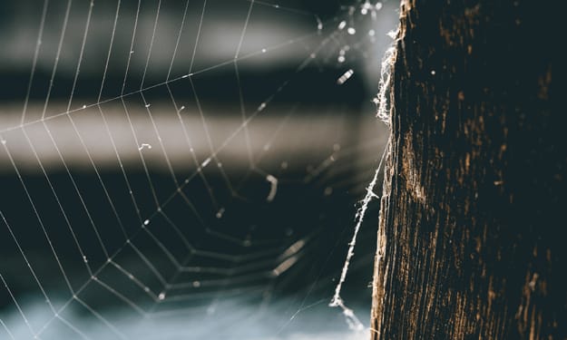 Inside the cabin, cobwebs drifted in the corners. Stagnant perfumes of dust and mold pervaded the air as the suns failing horizontal rays left the forest in darkness. George had spread his sleeping bag on the warped boards of the unadorned floor to sleep, drained his quart bottle of Mogen David, and passed out.