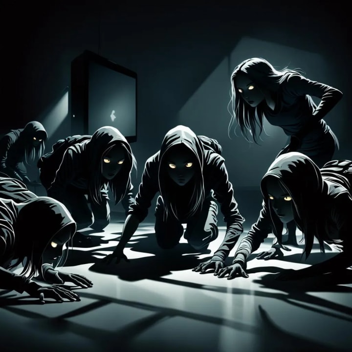 I open my eyes and the walls have closed in on me, the four walls have computer screens all showing me sleeping in my bed. They have blocked me in.