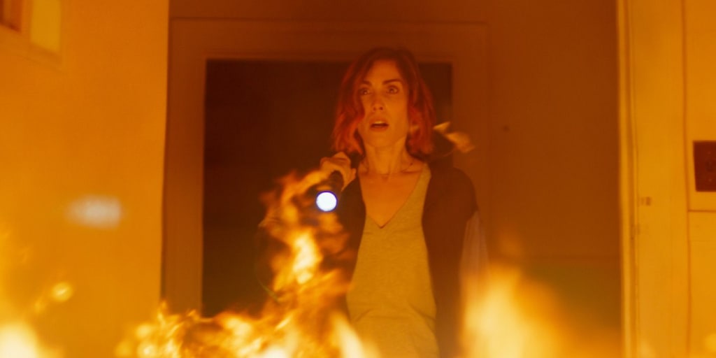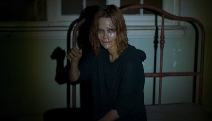 Demonic stars Carly Pope as Carly, a woman hiding from her past. 20 years before the start of our story, Carly’s mother became one of the most infamous killers in American history. Angela (Nathalie Boltt) was arrested after she’d set fire to a nursing home, a fire that killed 21 people. She would kill 26 people in all before being captured by Police. Carly has been haunted by her mother’s crimes for years, even after cutting off contact from her mother and changing her name.