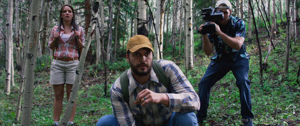 A group of attractive young people are getting horny and high in the woods, as one of them begins to tell a campfire story. As the group splits into couples to indulge in their attractive young people-ness, a rumble emerges from the forest. The rumble becomes a roar, and our pretty storyteller is dispatched.