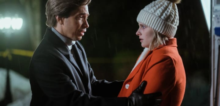 Troubled by this supposed new normal, Winnie ponders her fate while standing on a dock and looking up at the Aurora Borealis, brilliant lights in the sky not often viewable in Winnie's part of the world. It's here where Winnie makes a fateful wish, the wish to have never been born. As goes in the movies, be careful what you wish for. Winnie's wish comes true immediately and she finds herself in a dystopian version of her hometown. In this version, the Angel serial killer that she unmasked as Henry Waters, is still out there, still killing and claiming new victims that happen to coincide with Henry's business desires. Henry is now also the Mayor of the town, ruling everything with an iron fist and a big fake, spray-tan, and fake pearly white smile.