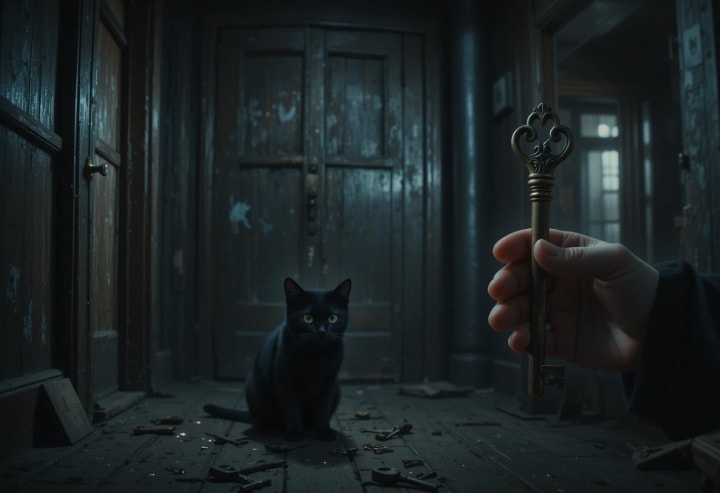 I woke up the next morning on my hallway floor, the door gone, keys nowhere to be seen. Milo stretched beside me, indifferent now, purring.