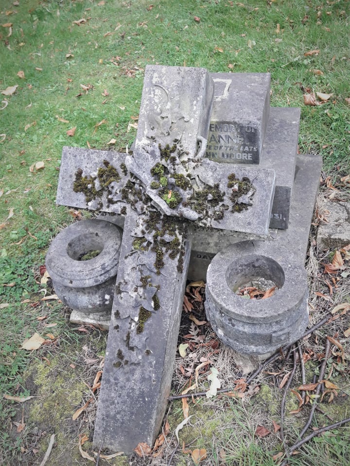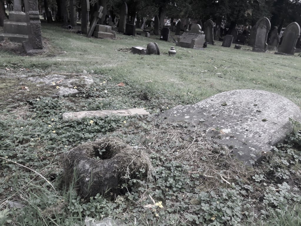 Further into the investigation we came across a grave in an appalling state. It was surrounded by other stones, fallen and cracked, and was covered in graffiti and beer cans. We tidied it up and walked on. Later, I returned to the grave out of sheer curiosity. I stood in front of it, read the words on the stone to learn the inhabitant of the sadly vandalised grave. In the video I recorded, yet another EVP had been picked up. This time, after I had finished reading the stone out loud, I heard in the footage an almost mournful-sounding "yeah," as if someone was confirming that it was his name.