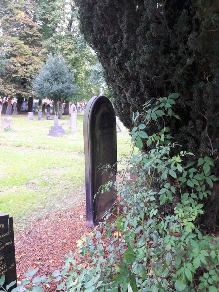 Sadly, this stone is now hard to read without standing on someone else's grave. Perhaps the tree was planted for the occupant, but it grew more than anyone anticipated?