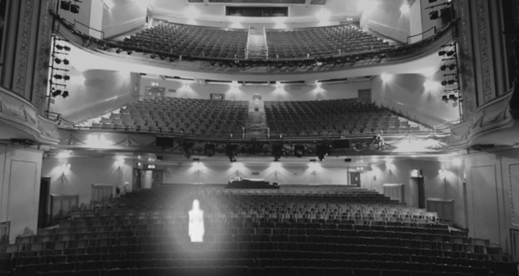 Not with a sound, just a feeling. Something compelled me to turn around. A door. A door that was not there before. A red oak door, looking as old as the theater room I was in. I stared at the door without movement for about 20 minutes. I knew this wasn't real. I looked all around this room for any way I could get out and there is no way I missed a door. I felt the door pulling me, grabbing hold of my chest and beckoning me closer.