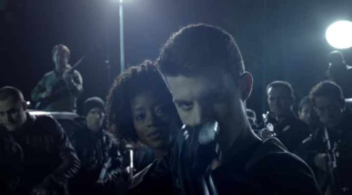 She is confidently smiling, and she's likely a pivotal character for Season 6B because of how many different scenes she can be seen in. She's standing beside Gerard Argent in a brief screenshot. The context around their partnership is unknown, but they appear to have likeminded interests, considering they're both pointing guns at Scott's pack. And from what I remember, Gerard and Scott called a truce. So, pulling a gun means Gerard has gone back on that agreement and he's taken his vendetta for werewolf hunting to the next level. Could this all be because of how Scott's pack inadvertently caused the death of both Allison and Kate?