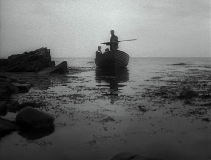 The film opens with a solitary Alma recounting the breakdown of her marriage with Johan. The image of the two of them arriving ominously on the small wooden boat parallels a more recent cinematic portrayal of isolation in Robert Eggers' recent indie hit 'The Lighthouse' (2019). Certainly, it's not hard to see where Eggers scooped a great deal of his inspiration.