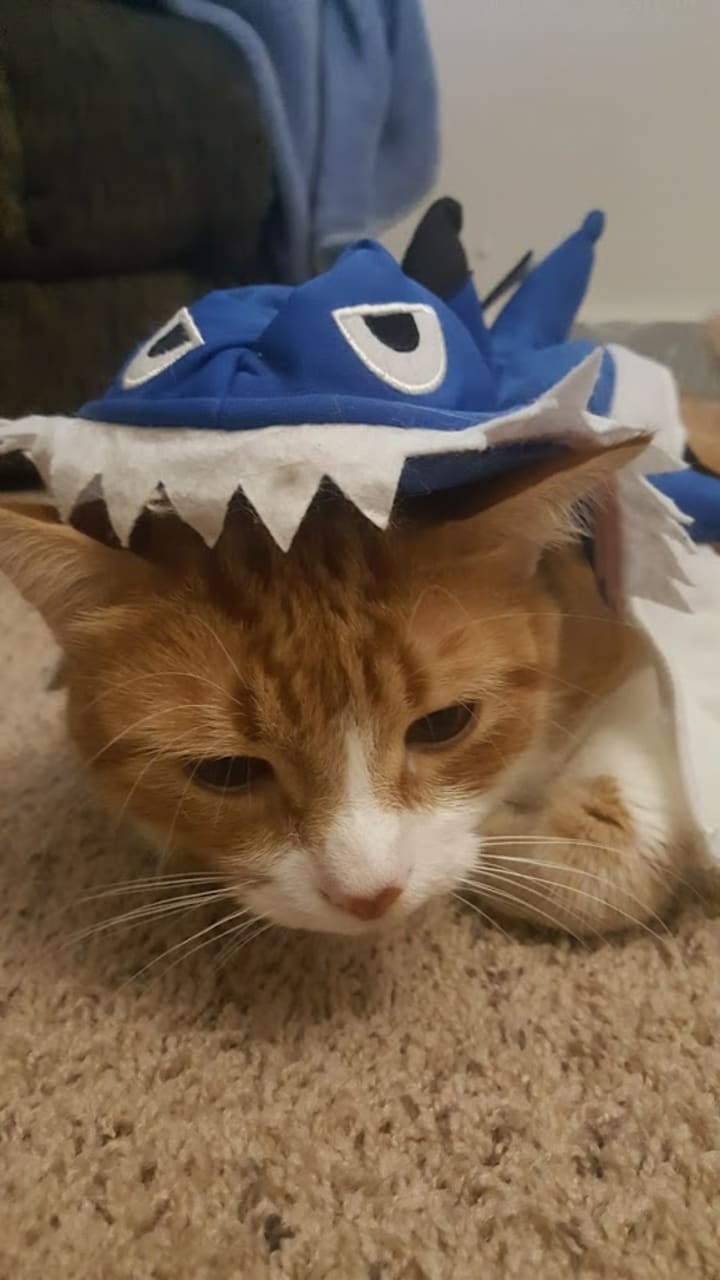 "You could be a shark. Look, dogs and cats alike enjoy dressing up as sharks. I've seen both Serena and Fumbles dressed that way. You too can join their Sharknado."