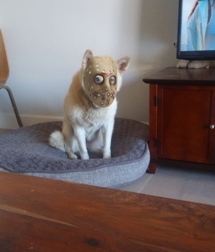 Okay, then I be Jason. Friday 13th? Ever see film? Is scary. I wear mask only. Not block ears. Be scary Halloween dog.