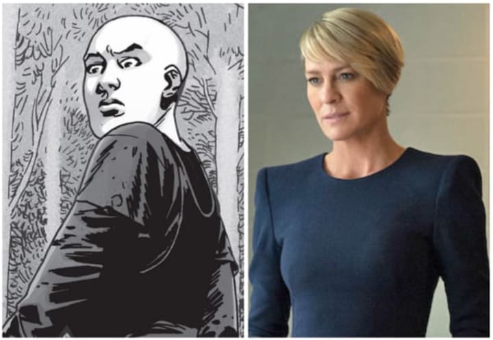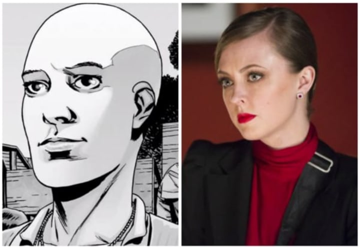If villains who wear the flayed skins of the undead floats your boat, then get ready for this one. Premiering in Issue #132 came The Walking Dead's own version of The Ancient One (whitewashing free), the chrome-domed Alpha. Now, it will probably be at least Season 8 (if not 9) that we first set eyes on #Alpha, but we can already hear whispers of The Whisperers. So, place your (alpha)bets on who will be leading the motley crew of villains — here are some of our favorite fan-castings for the role of Alpha.