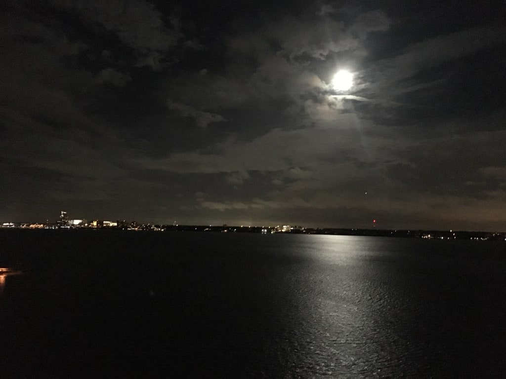 She looks at the water, something so blue and open in the day but so dark and menacing at night. “I feel safe. Do you?”