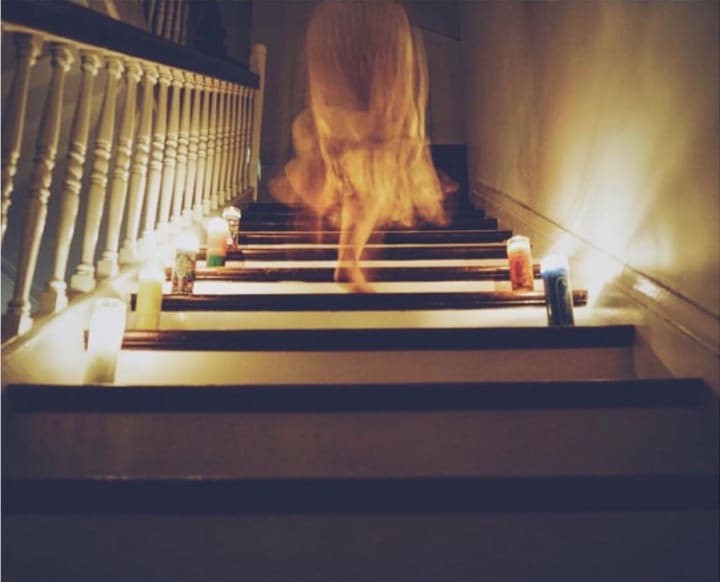 The only part I didn’t like about our property was a large, looming, weather-worn roadside crucifix. It was bent and discolored, swaying ominously during the storms. It had the words: “SMILE, JESUS LOVES YOU” etched onto it. I’d throw rocks at it, a daily ritual. But the most unsettling part of our home was a ghost that lived with us. I named her Samantha. Sam lived in my mother’s room, specifically her bathtub. I hated taking baths in there. Samantha would watch me, just around the corner. Every time I’d see her from the corner of my eye, she’d disappear in a flash. I could never catch what she looked like.
