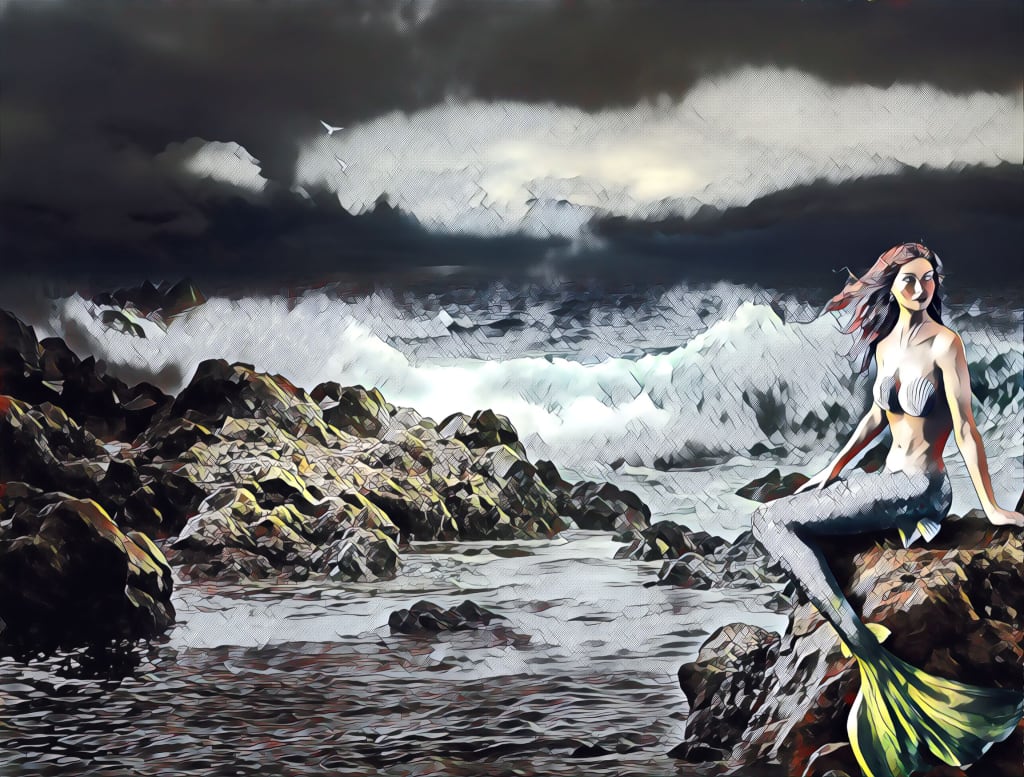 This was 28 years ago. I’ve never walked the ground again. And how could I? My tail has grown out of proportion, and the air feels thinner and thinner in my lungs. My hair is also very long now, and entangled with seaweed and little fragments of coral. I do, however, sit on the rocks at the port’s entrance whenever I need a bigger meal than my usual dose of herring and squid. It is usually young, dreamy fishermen who answer my call, the ones who are sailing back home after a night offshore. And it is always with the same song that I lure them into the water, the only song I’ve ever known.