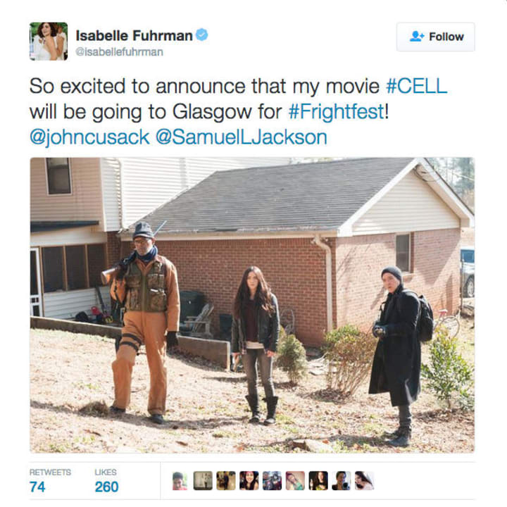 Stephen King's latest adaptation CELL is set to premiere today on the BIG screen as part of the Horror Channel's Frightfest event here in the U.K. This is fantastic news for King fans as after more than 2 years of conflicting reports we're finally getting to see it. This, according to rumor, is down to studio interference that has held Cell back from debuting and left many (including the Fright-fest organizers) believing the film wouldn't get an official cinema release. Thankfully one of the stars of Cell kept fans up to date earlier in the year: