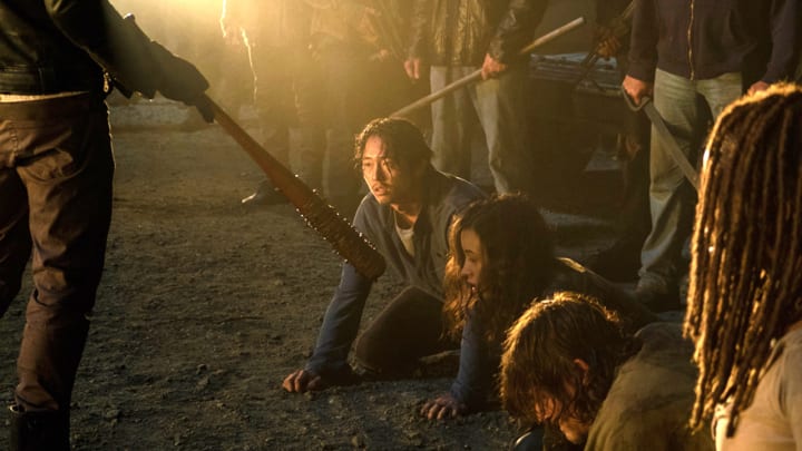 Everyone hated watching Negan (Jeffrey Dean Morgan) bludgeon Glenn (Steven Yeun) to death in the Season 7 premiere. It was brutal, senseless, and killed off a beloved character. His arc left so much to be desired, too, so perhaps a one-off episode depicting a What if Glenn Survived-scenario can pan out. Coincidentally, AMC had the TWD crew shoot execution scenes of all the characters with their necks on the chopping block. The footage is already complete. It only needs to be repurposed as a setup for Glenn being the sole survivor after Negan slaughters his friends. One might question why not simply spare Glenn, but the idea of him being alone afterward is much more intriguing.