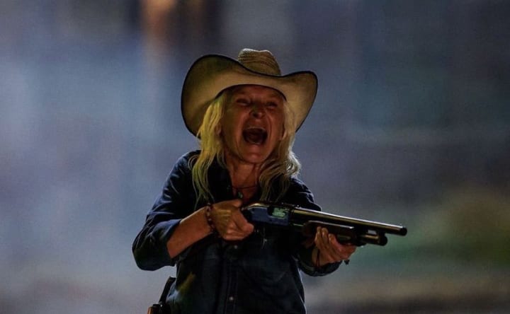 Unfortunately a good chunk of the cast are unlikable, stupid and annoying. Don't get me wrong, there are a few stand out characters that were decent. There is a local Texan named Richter (played by Moe Dunford) who lives in the town, at first he is antagonistic to the main cast, but ultimately likable. He goes from ignorant countryman to gun tooting savior when Leatherface is set loose. Unfortunately this character dies early on, which certainly adds tension for the more cowardly survivors. Another stand out character is the sole survivor (Sally Hardesty played by Olwen Fouéré) of the original movie, yes she makes a return, but now she is ready to take on Leatherface with a shotgun and brave attitude. She lasts until the final act of the film and has a really epic battle with Leatherface before, sadly losing, so that miss plain Jane (Lila played by Elsie Fisher) and her annoying sister (Melody played by Sarah Yarkin) can take the spotlight. As you can tell, I'm not even a fan of the main character for she is purposely bland in my opinion. This is to make the character more relatable to pretty much everyone, it's why protagonists in video games are mostly silent, or why book protagonists don't have much personality. She's not completely unlikable, but just like most of the cast, she is very dumb and keeps making silly mistakes that are eye rolling. This is where the film really fails, as the main cast are a group of naive, pretentious city people. They are so narcissistic to the point where they are more annoying than relatable. At first you could guess this was intentional to create "bad characters" that you can't wait to see killed off, but as the film progresses you realize these awful people are our main survivors. Then it slowly becomes obvious how badly they fumbled this script.
