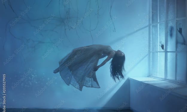 Suddenly, she stood up and started to walk towards me. I backed away, but she kept coming. I turned to run, but the door slammed shut, and I was trapped in the room with her.