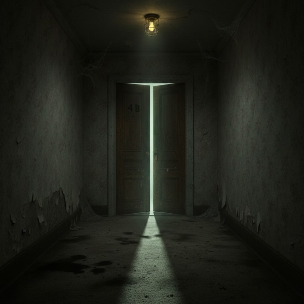 Curiosity has a way of eating at you. Over the next few weeks, I found myself slowing down whenever I passed 4B. Sometimes the door looked completely normal, just another faded brown wood panel in a tired old building. Other times, I could swear the knob rattled, or the faintest whisper slipped through the cracks.