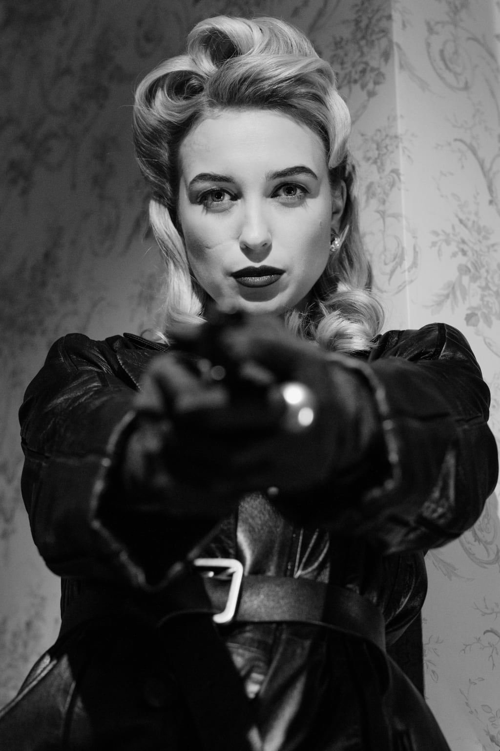Armed with this new evidence, Sarah went to the man's house to arrest him. But as she walked up to the door, she heard a noise from inside. She drew her gun and cautiously entered the house.