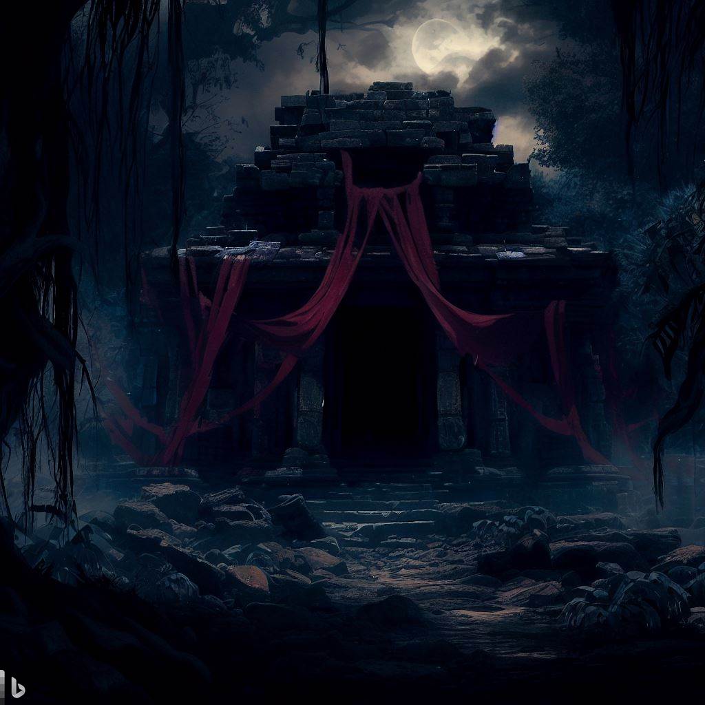 Kwame gazed upon the hauntingly beautiful webs that adorned the temple's entrance, and a shiver ran down his spine. He reached out to touch the silk, and a voice like a whispering nightmare echoed, "Who dares seek the forbidden?"