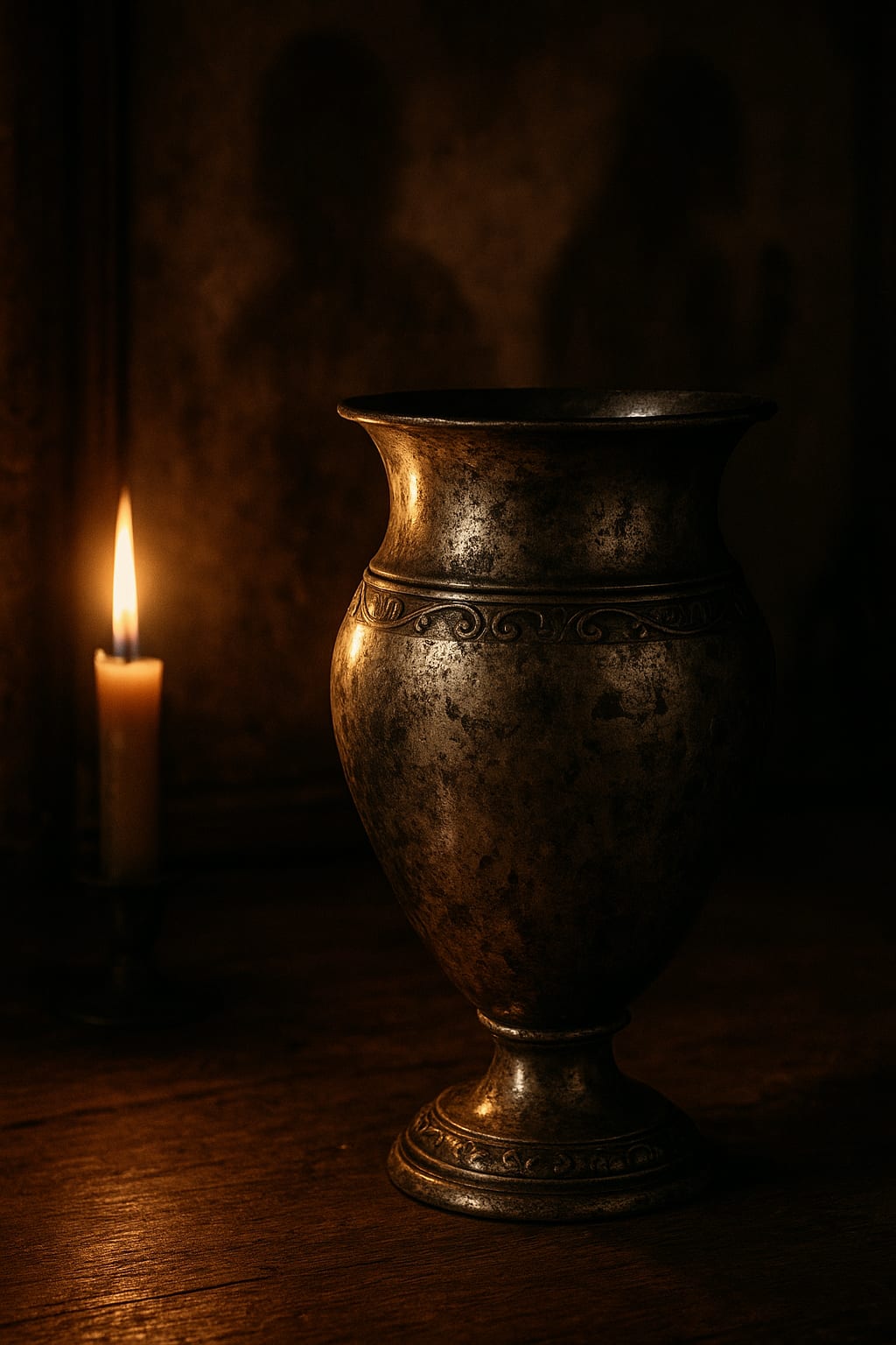 It looks like nothing more than a piece of art. A silver vase, hammered to perfection by a craftsman long turned to dust. Gleaming curves catching the soft glow of candlelight, as if cradling secrets in its polished skin. A treasure for any collector. But those who have touched it would tell you the truth... if they were still alive.