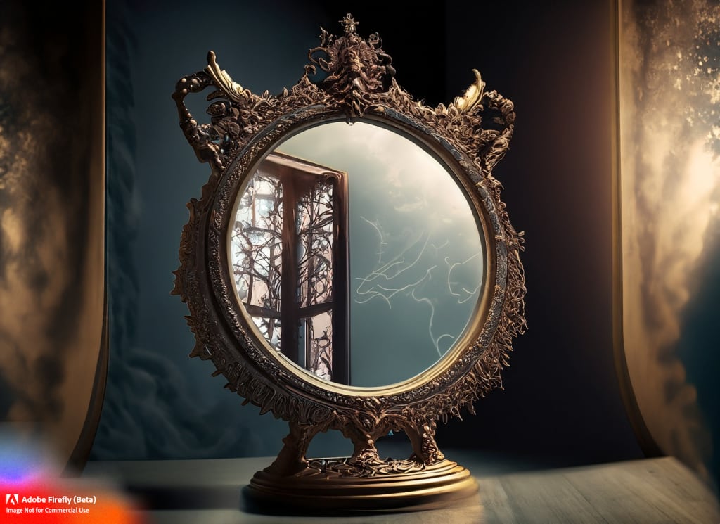 One day, she came across a mirror that caught her eye. It was a large oval mirror with a silver frame, decorated with intricate patterns and flowers. It looked very elegant and expensive, but it was surprisingly cheap. The shopkeeper told her that it was a bargain, because no one wanted to buy it. He said that it had been in the shop for years, and that it had a strange history.
