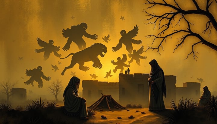 After the burial of the murdered woman, strange occurrences began to disturb the village’s tranquility. Saeed’s children claimed that their mother visited them at night, playing with them and speaking to them as though she were still alive. At the same time, Saeed himself was tormented by nocturnal attacks. The apparition of his wife appeared to him as a giant bird that clawed at his neck, leaving him gasping for breath. The terrifying events soon spread fear throughout the village, especially after the neighbors confirmed seeing the ghost lingering near the children, interacting with them as if she were indeed their mother.