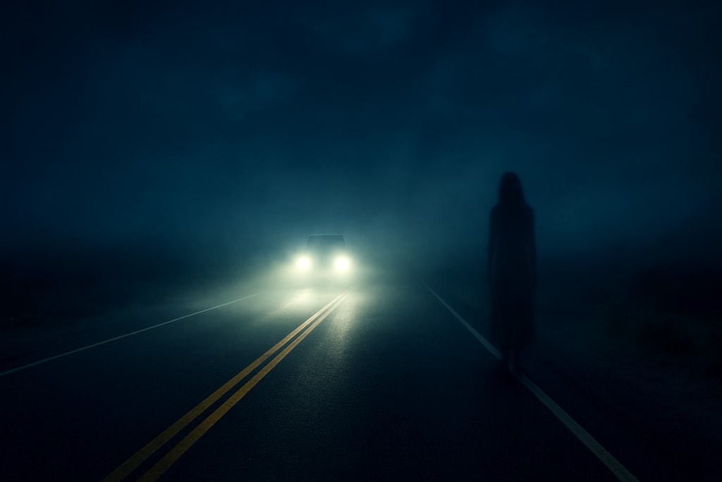 The first is that of the Phantom Hitchhiker — a mysterious woman in white who is said to appear on the roadside at night, asking for a ride. Those who stop claim she suddenly disappears from their car without a sound. Others who pass her by report seeing her again miles ahead, standing in the exact same spot.