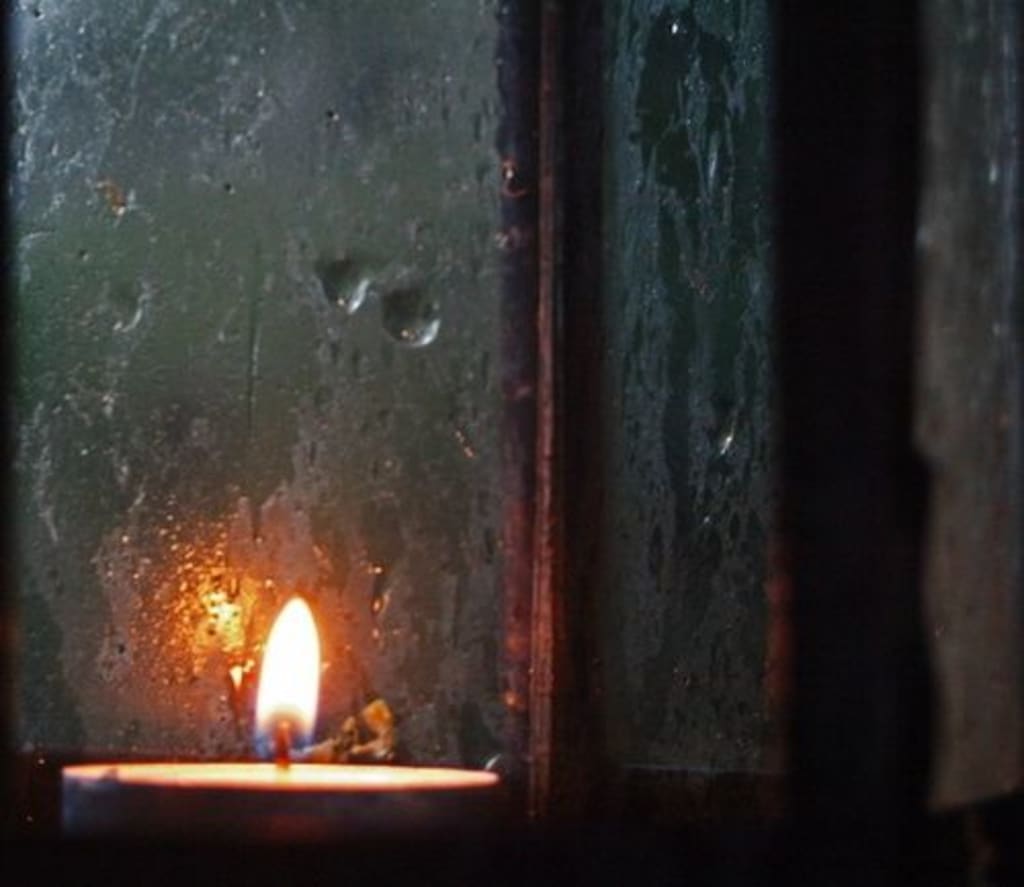 I shivered and squinted. The candle had burned down to a nub, the dirty yellow wax spreading over the rough wood of the table. I cupped my hands against the window to get a better view, but my breath froze as soon as it touched the glass. The shadows inside grew, moving hypnotically against the walls. A trick of the candle’s wavering flame.