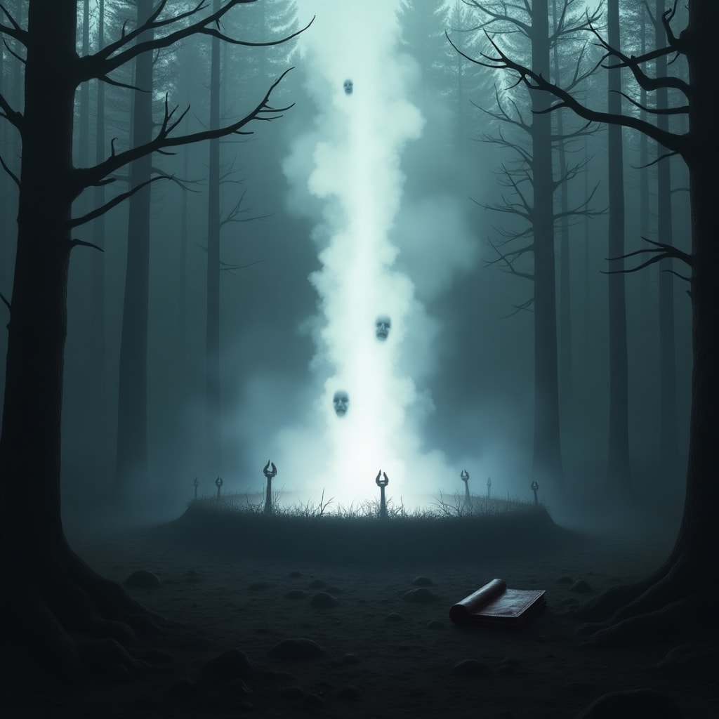 It was a column of white light rising ten feet high, humming like an insect’s wings. And inside it — faint, shifting, screaming — were faces.