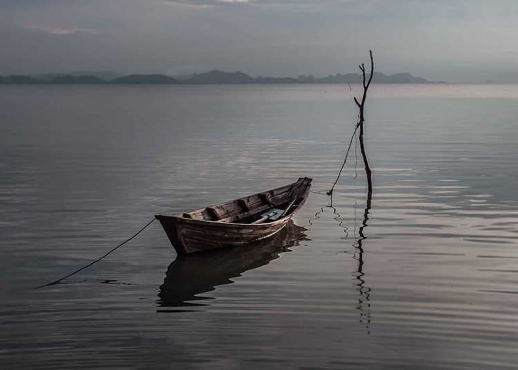 “Ugh,” Tom grunted as the weight of his father landed on him. He pushed, half-raising out of his seat, and shoved the older man up and over the side of the boat. Bob flopped in the water hard, almost capsizing the boat and taking Tom with him. Blood trailed from his head and clouded in the water as the body sank. Tom picked up an oar and pushed his father down, jabbing at his back. The body sank faster, then was out of reach.