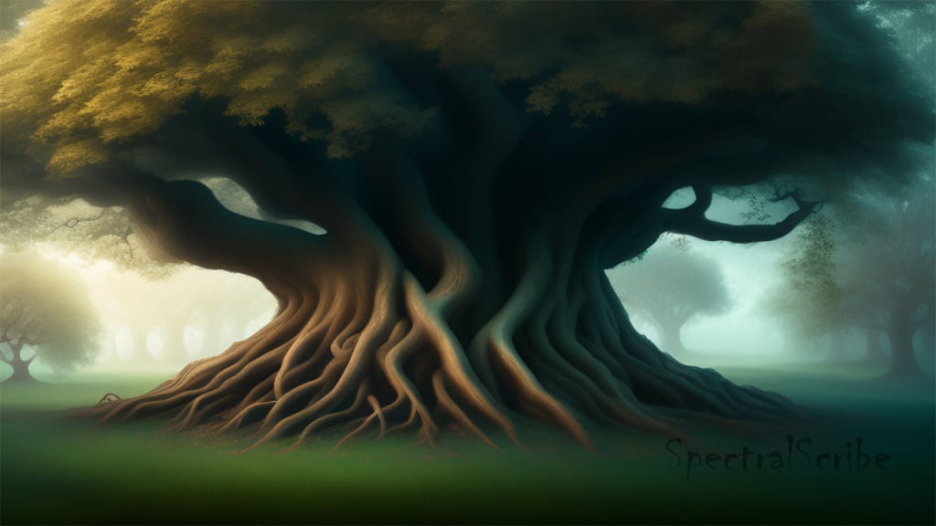 She experienced a strange sensation of foreboding as she got closer to the tree. She chose to disregard it and move on to the trunk. She examined its gnarly bark with her palm before gazing up at its twisted branches. She was abruptly awakened by a voice calling her name. Her mother's voice could be heard, but as she turned around, she was alone.
