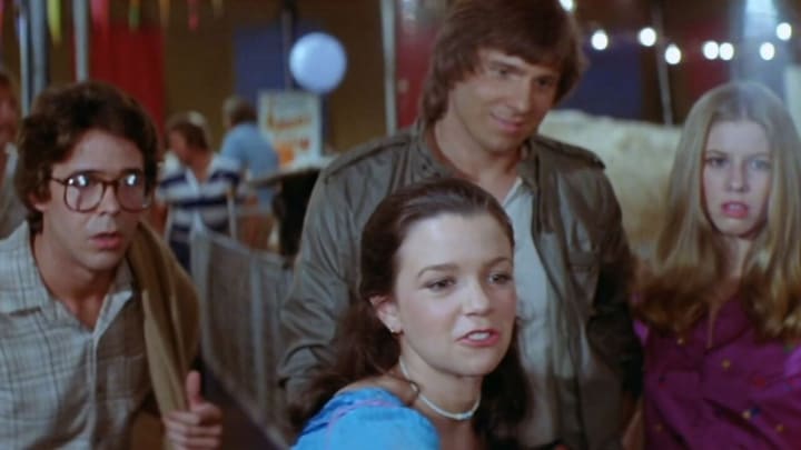 The Funhouse stars Elizabeth Berridge as Amy Harper, a suburban teenager heading out on her first date with Buzz (Cooper Huckabee), a college-aged guy she’s clearly not telling her parents much about. Despite warnings about the carnival’s dark history—where teens were found dead not long ago—Amy and her friends Liz (Largo Woodruff) and Richie (Miles Chapin) head off to check it out.