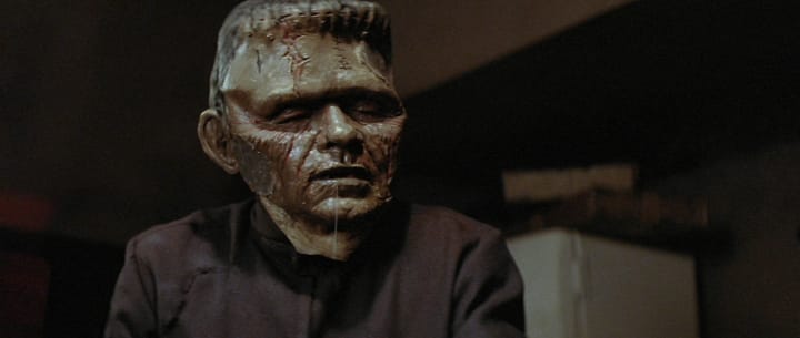 This motif continues with the film’s antagonist, Gunther Twibunt, aka The Monster, who begins the film wearing a Frankenstein-style rubber mask, only to later reveal a grotesque, mutated face—evoking everything from The Elephant Man to Freaks. Hooper clearly wants to blend classic horror aesthetics with his own grotesque sensibilities. Unfortunately, the execution doesn’t live up to the concept.