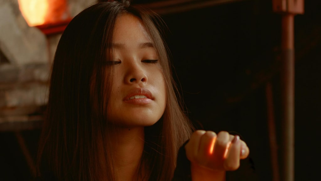 He picked it up and smiled. It had a picture of the most beautiful girl he had ever seen. She had a dress with tights on and red shoes, and her hand was formed into a peace sign.