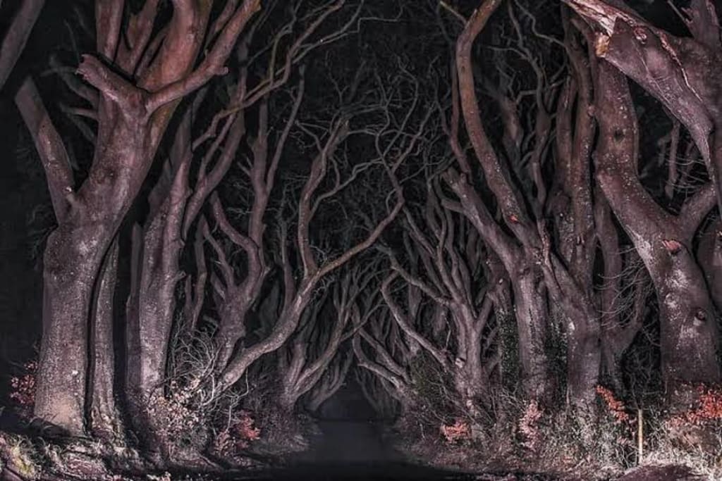 He took his lighter from his pocket and lit the candle. Suddenly, his heart felt as though it was beating out of his chest, a rush of hot needles filled his torso and down to his toes. Will’s folded picture from his pocket now lay flat on the table. He pulled the picture right up to his face in disbelief, thinking this was some sort of a sick joke. He had no idea how it got here, though he noticed something very strange had changed in the photo. Just behind Will and Michael, stood the same old woman he saw in the window, the Grey Lady. She was standing extremely close behind them, so close she was almost touching them. Will looked up away from the photo, trying to peak through the darkness of the cabin, desperate for another sign when suddenly, perched in a little rocking chair opposite him on the other side of the cabin, sat the Grey Lady, watching him as a smirk rested upon her face. She hummed quietly, her piercing eyes starring through his soul. Will grabbed his torch and jolted toward the door of the cabin. Though he lacked energy, he forced his body to run as far away through the pines as he could, following his red ties on the trees for direction. It was pitch black, he could hear voices warning him away, though there was one sound in particular which stunned him; the woman’s voice called his name through the trees. Will kept running relentlessly, until something remarkably strange began to occur. As he persisted in one direction, the red ties led him straight back to the same cabin. It was though every tree he passed began to look a bit too familiar. No matter how many times he changed direction, the cabin continued to appear from a far. It was like a parallel dimension he couldn’t escape from, the further he ran, the closer he came to the cabin. He stopped to rest, vomiting with anxiety and nausea from the rotting smell and fear in his heart.