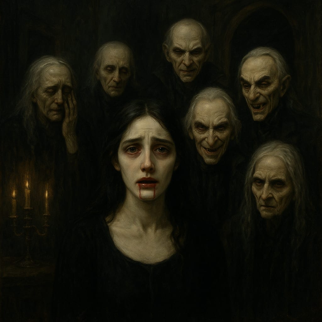 She stood at the window on the top floor, pale as snowlight, a girl with long black hair and a gaze like hunger restrained. She did not blink. Her lips were red—not painted, not bitten, but red as arterial truth. She said her name was Elira.