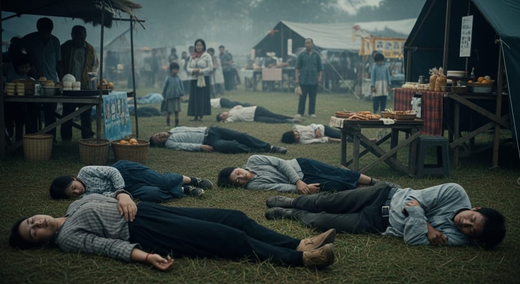 In 1998 in Japan, specifically in a village there called Sonobay. Sonobay is an ordinary rural village and its people are simple and kind people. It is similar to the rural village that we have in Egypt. The important thing, sir, is that every year a festival is held in the village of Sonobay. A very large festival is held in a wide area and all the neighboring villages attend. They sit together all day and eat, drink and play. The children also play in the amusement park. And so on. In 1998, this festival was held in the village and all the people were gathered and things were fine and perfect, but in a moment everything changed. Suddenly the residents of the festival began to feel very tired.